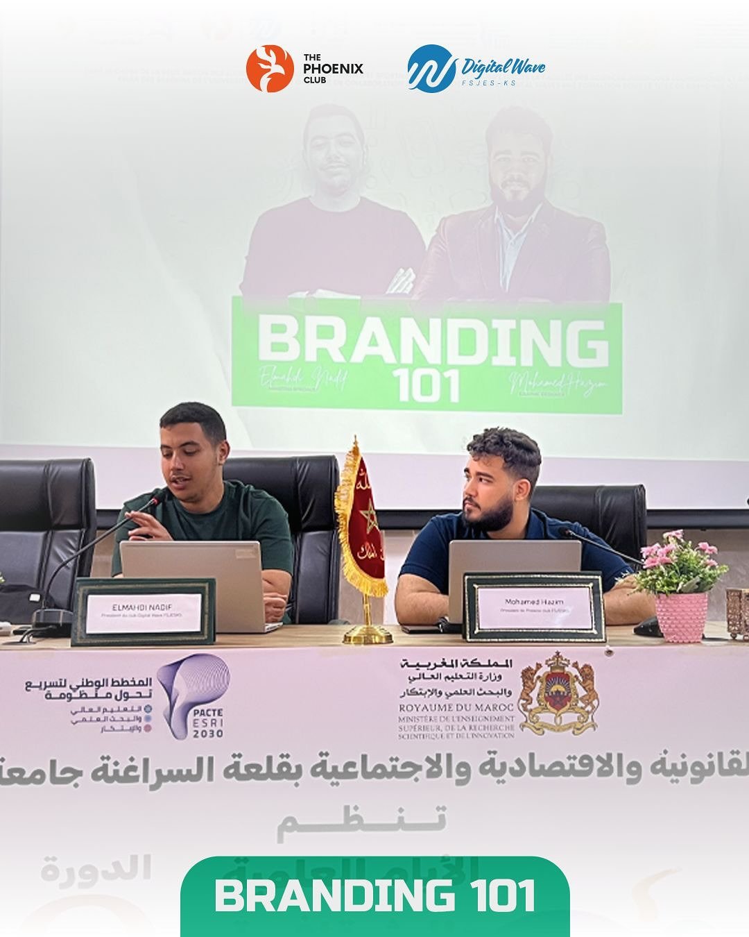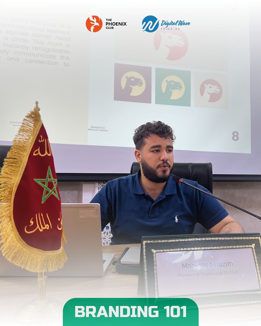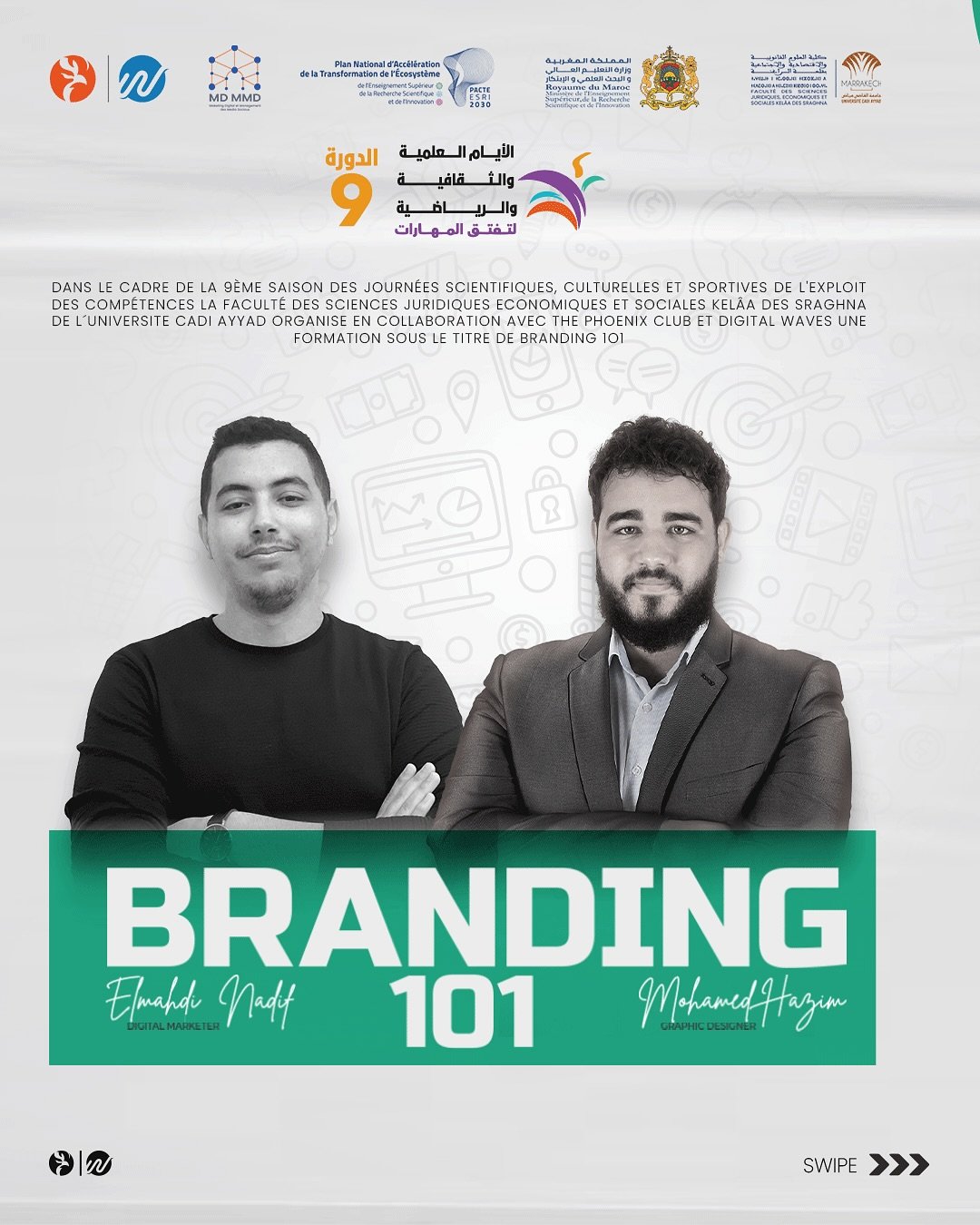 In a landmark collaboration between Cadi Ayyad University, Digital Waves, and The Phoenix Club, the FSJESK Creative Lab became a theater for strategic transformation. Under the visionary mentorship of Mohamed Hazim (Graphic Designer) and Elmahdi Nadif (Digital Marketer), we launched Branding 101—a masterclass designed to strip away the “decoration” and reveal the “soul” of professional identity.