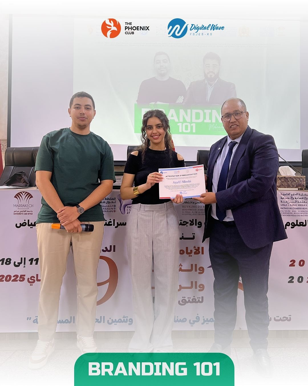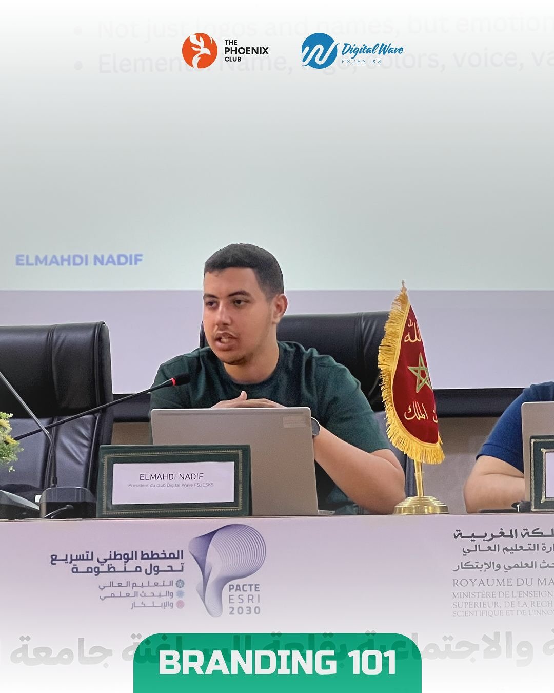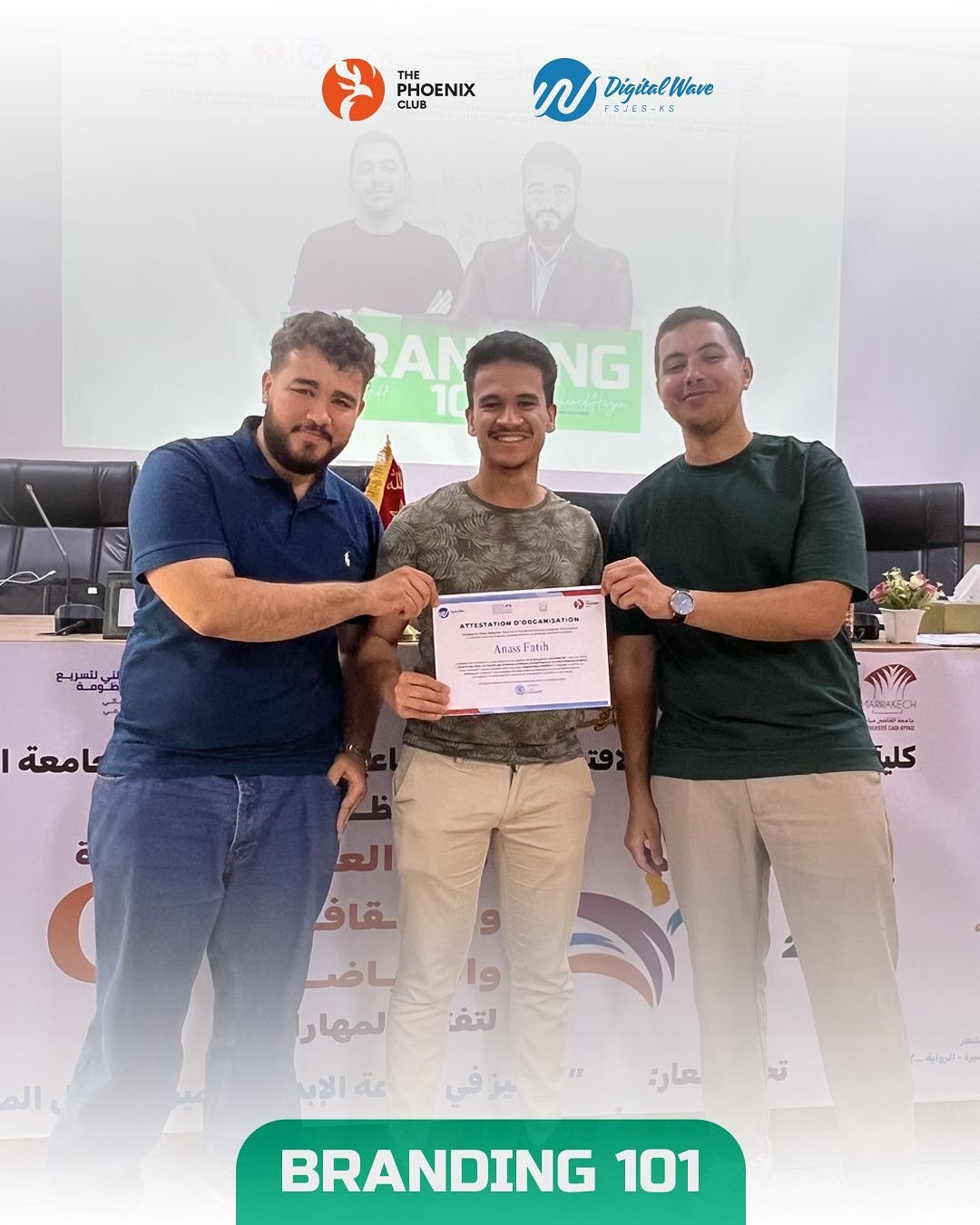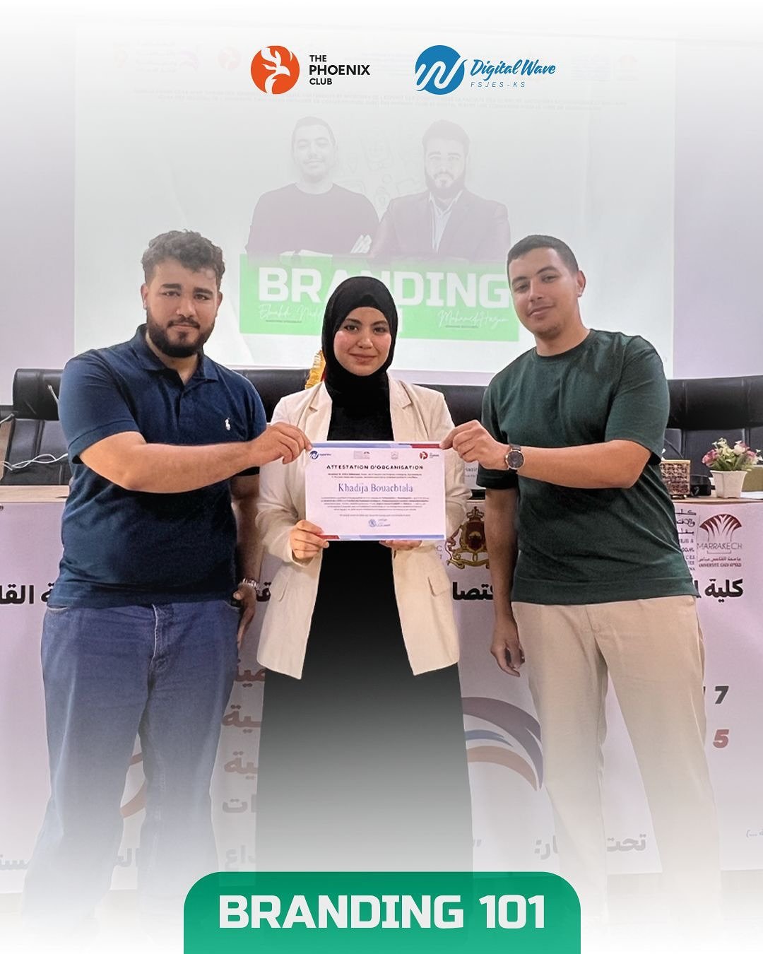 In a landmark collaboration between Cadi Ayyad University, Digital Waves, and The Phoenix Club, the FSJESK Creative Lab became a theater for strategic transformation. Under the visionary mentorship of Mohamed Hazim (Graphic Designer) and Elmahdi Nadif (Digital Marketer), we launched Branding 101—a masterclass designed to strip away the “decoration” and reveal the “soul” of professional identity.